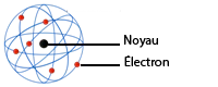 Les électrons sont en mouvement autour du noyau. Ils se déplacent de façon complexe dans une zone appelée nuage électronique (où il est probable qu’ils se situent). Il porte une seule charge électrique négative. ( -1 )