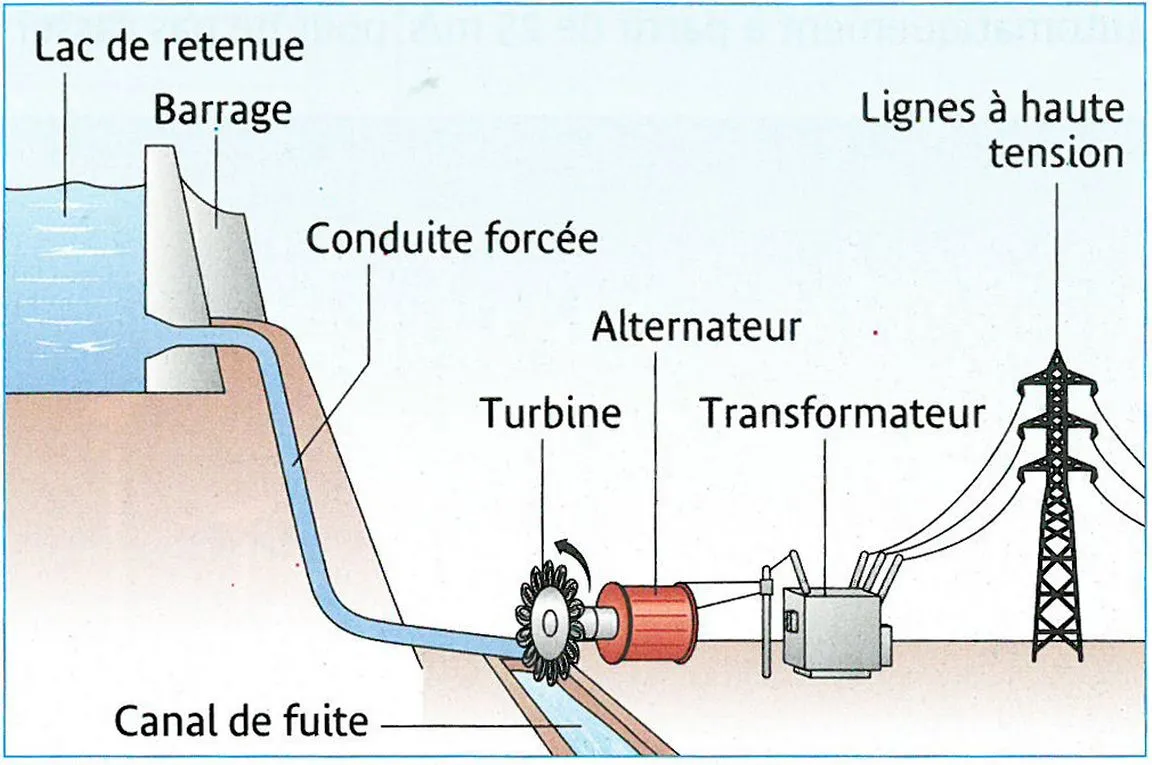 centrales hydrauliquesLa centrale hydraulique fonctionne avec l’énergie de l’eau en mouvement.