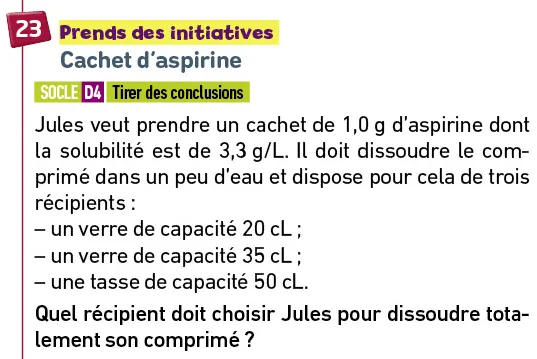 Tu as une solution saturée d’eau salée de disponible.(entre 50 et 100mL)