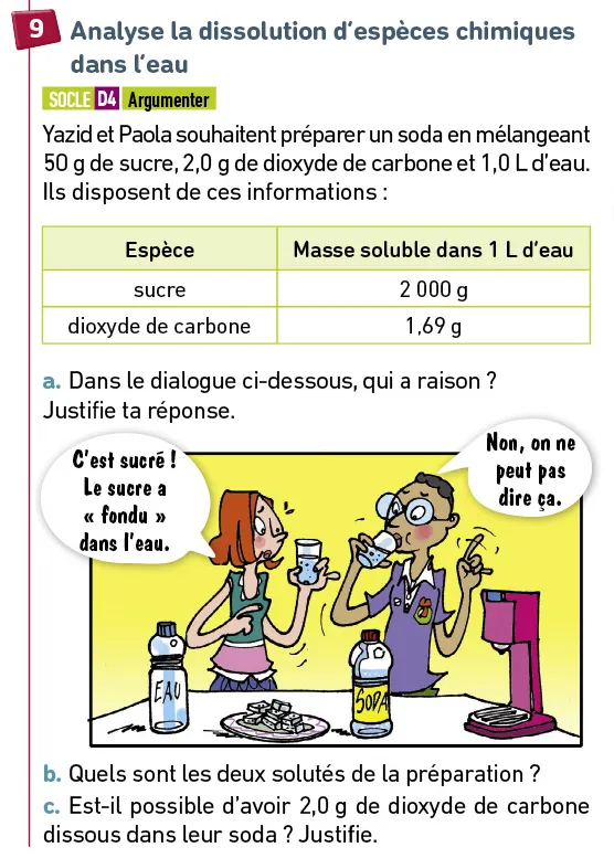 b) Le sucre et le dioxyde de carbone sont les solutés.